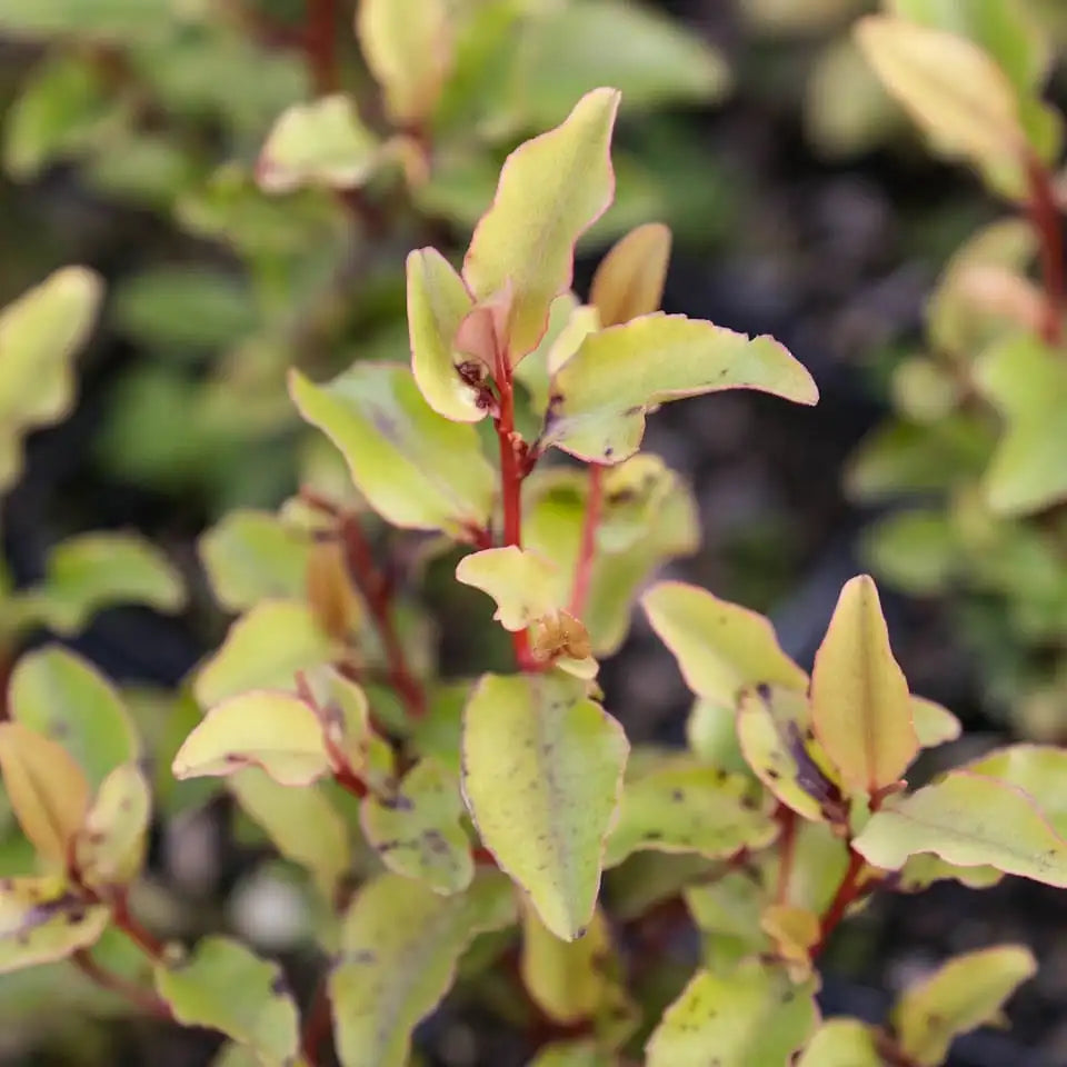 Common name Red Matipo – Mapou is a large shrub or tree with distinctive red branchlets and wavy leaf margins.